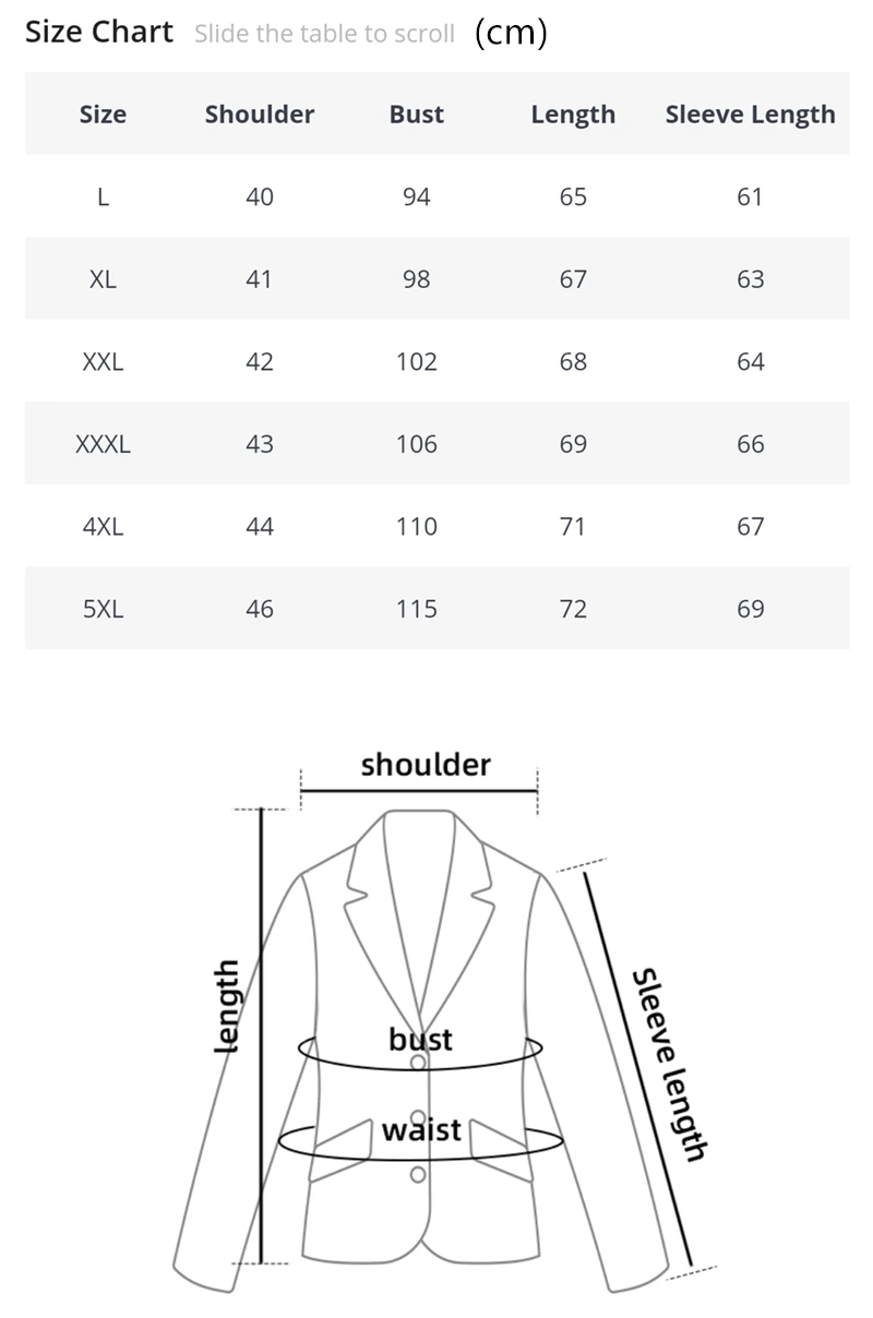 Com opções Plus Size do L ao 5XL, este blazer veste todos os estilos e corpos com a mesma imponência. Vista-se com segurança, destaque-se com elegância e sinta a diferença de um blazer feito para marcar presença.