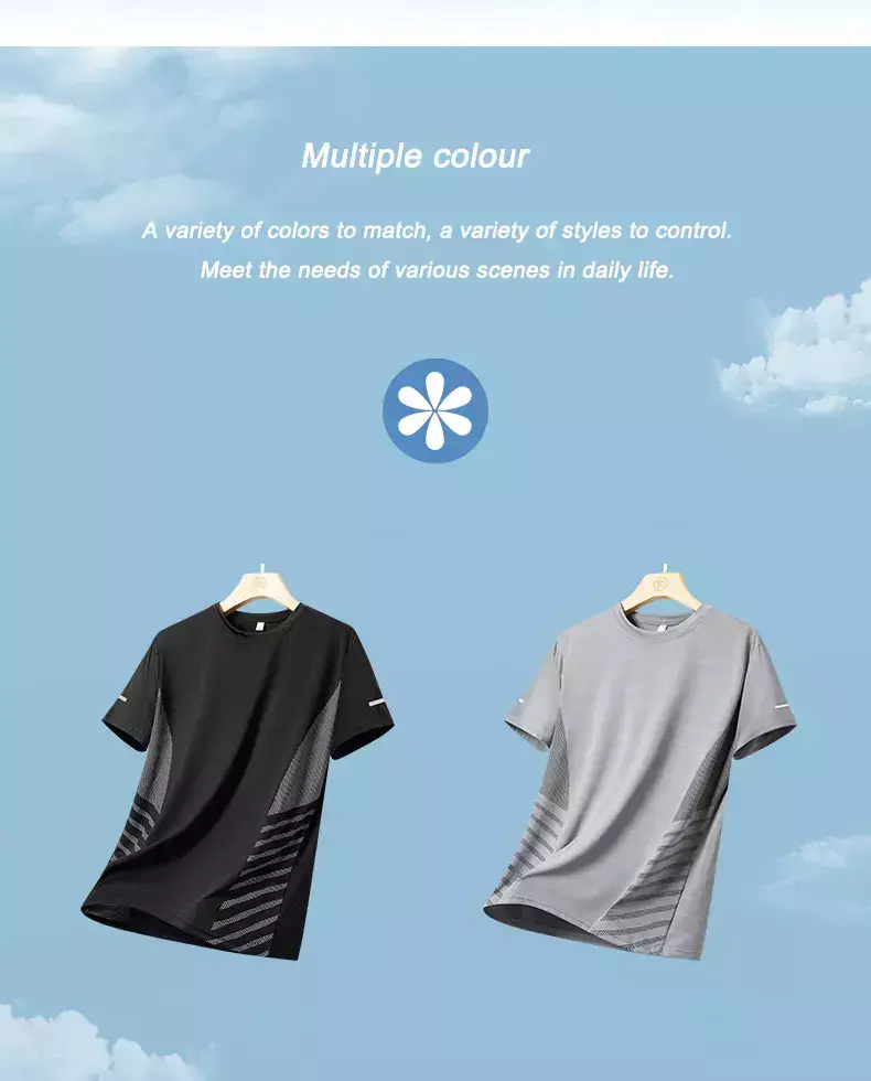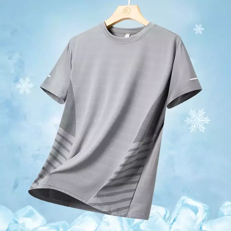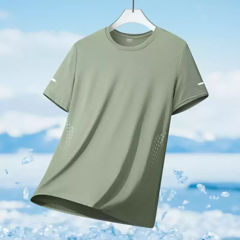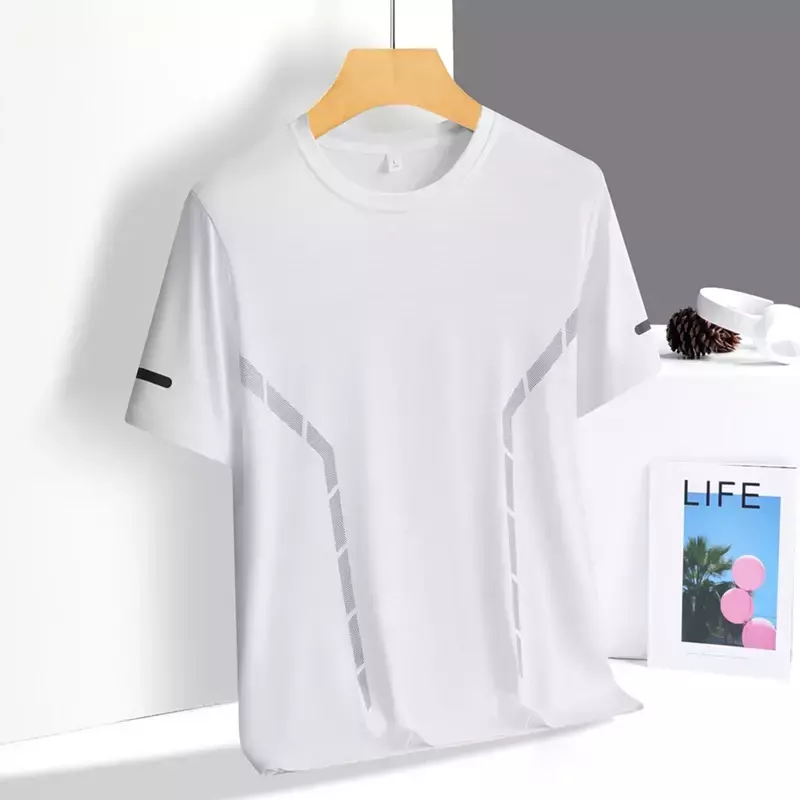 A camiseta masculina de corrida verão seda gelo foi desenvolvida para quem busca desempenho e leveza nos treinos. Produzida em tecido fino de seda gelo respirável, proporciona frescor imediato, mesmo nos dias mais quentes. Sua tecnologia de secagem rápida mantém o corpo seco durante os exercícios, enquanto a impressão reflexiva garante mais segurança em corridas noturnas.