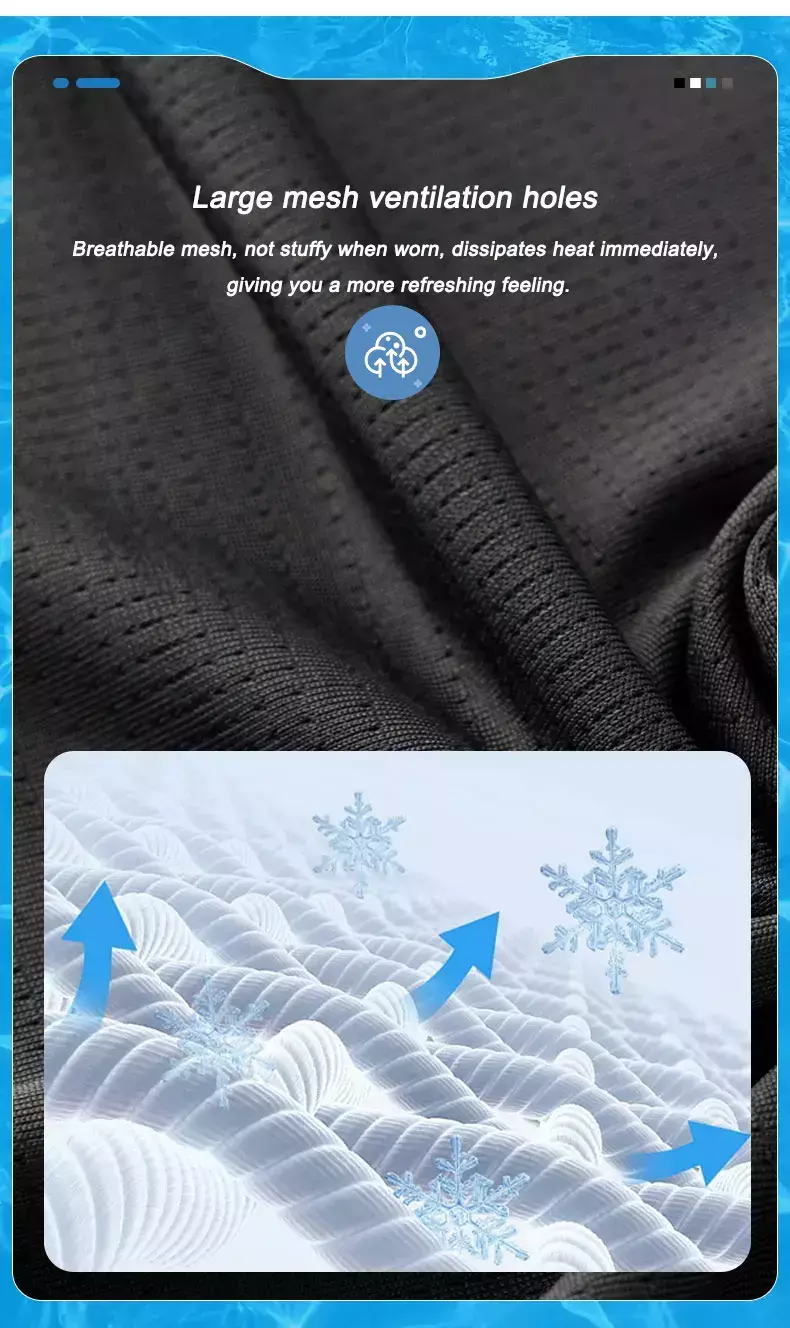 Malha respirável, não abafada quando usada, dissipa o calor imediatamente, proporcionando uma sensação mais refrescante.
